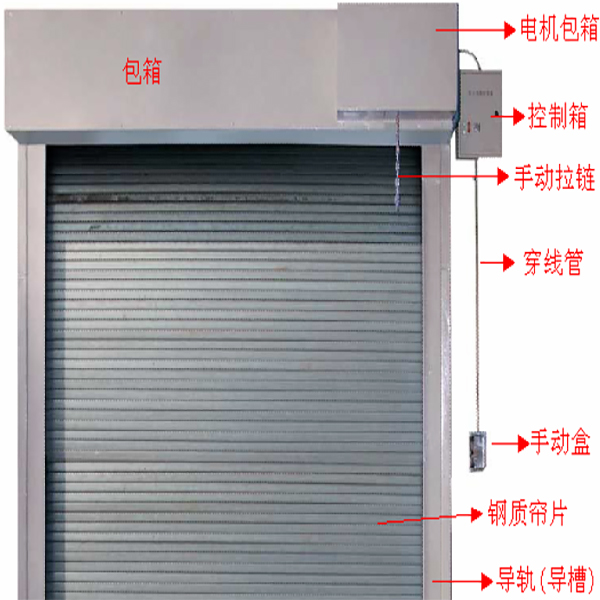 ① 控制箱設置在卷簾旁邊,探測器、火災報警系統的指令以及外部電源等均接入控制箱,由控制箱統一控制防火卷簾;